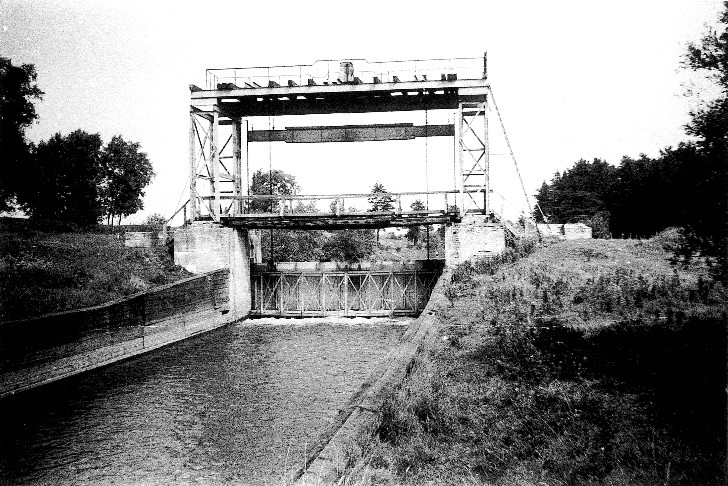 In the middle of the three-kilometre-long canal, there was a mighty lock that regulated the water level in the lower part of the canal. They were sometimes used to clear log jams by storing water and then rapidly releasing it over the log jam