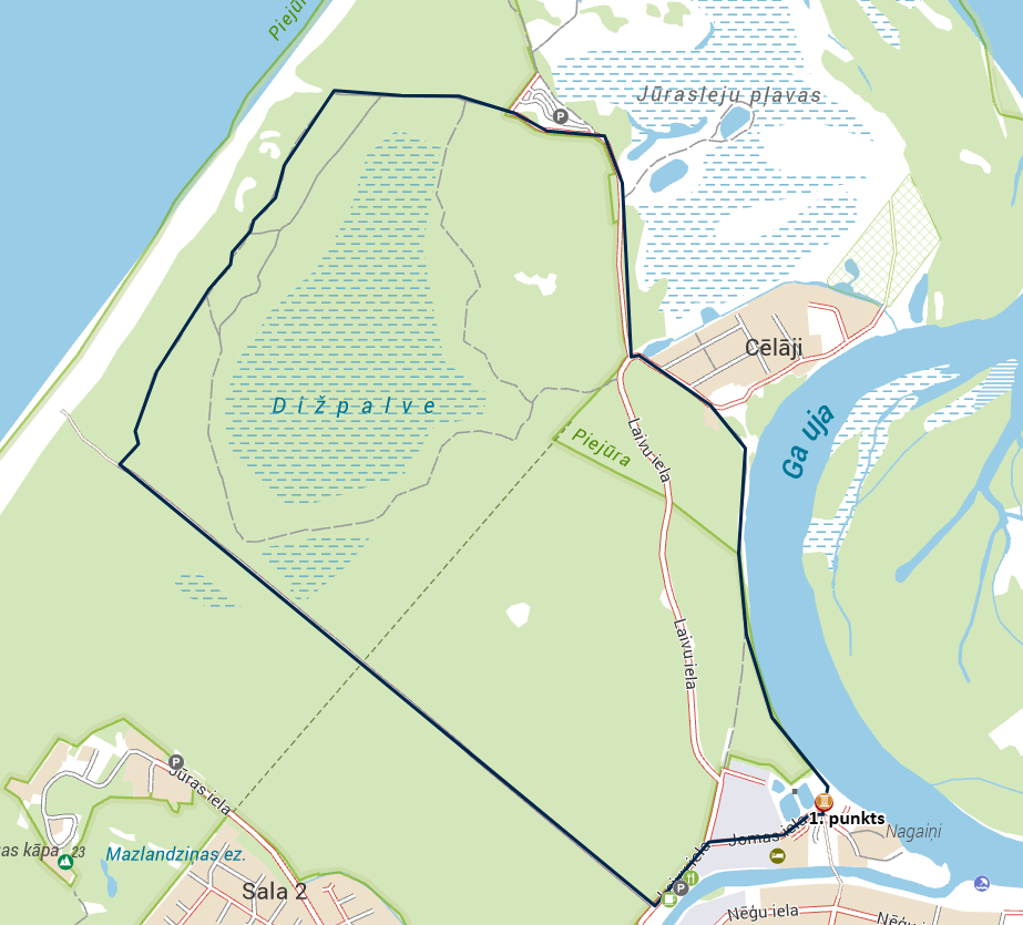 CNC → Gauja → Pārcēlāju iela → Laivu iela → Ugunspunkts → Reņģu ceļš → Carnikavas promenāde → Jomas iela → CNC