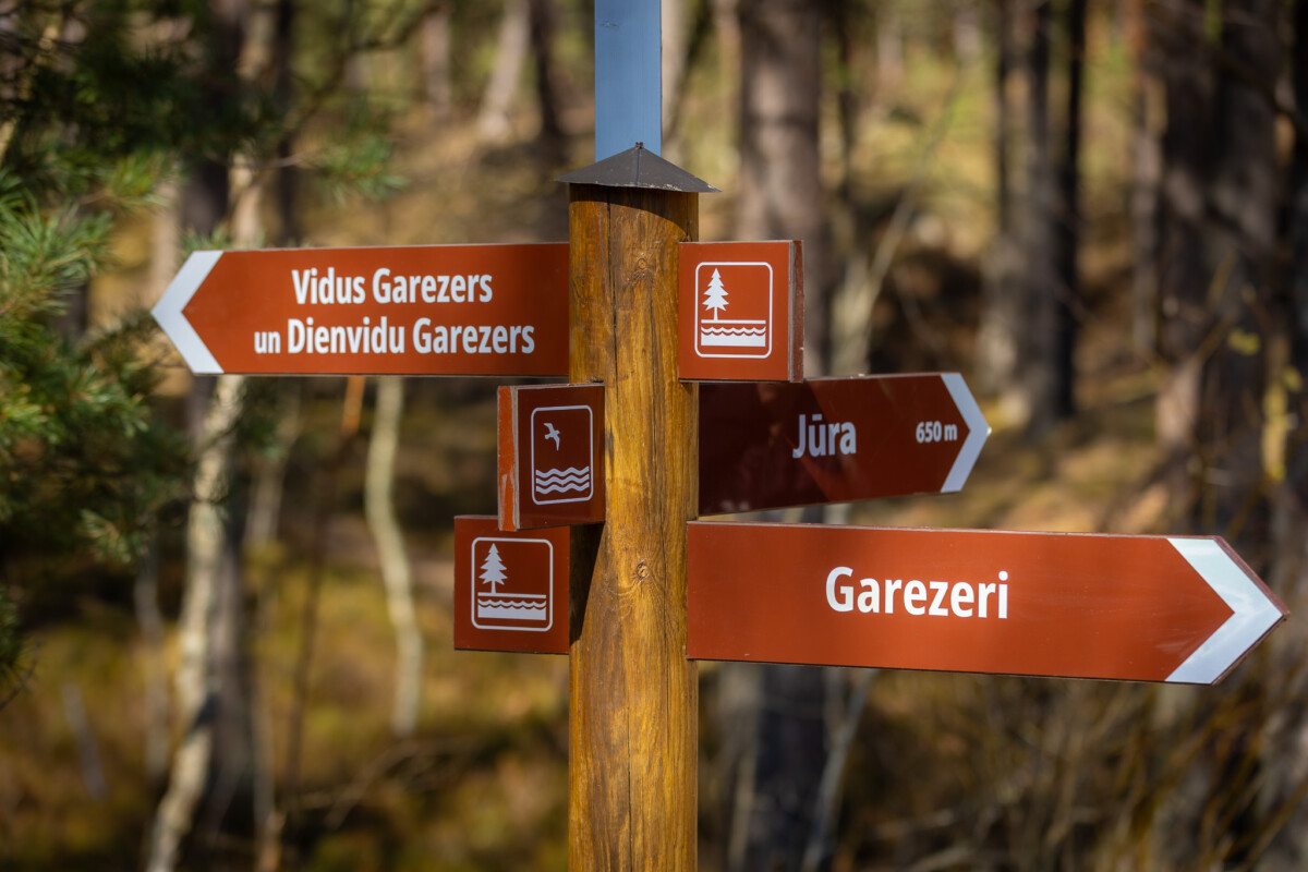 - Lineārais maršruts – aptuveni 7 km garš. To var sākt gan no Gaujas, gan Lilastes stacijas, kur kursē vilciens maršrutā Rīga–Skulte. Maršruts ved gar Ziemeļu, Vidus un Dienvidu Garezeriem. Segums pārsvarā ir meža takas, smilšaini celiņi un kāpu reljefs, kas lieliski piemērots mierīgai pastaigai dabā.